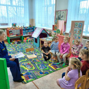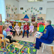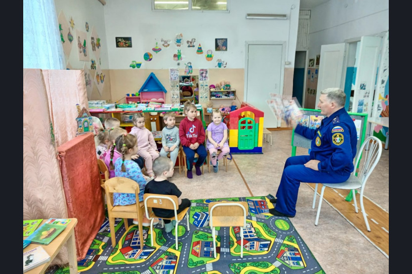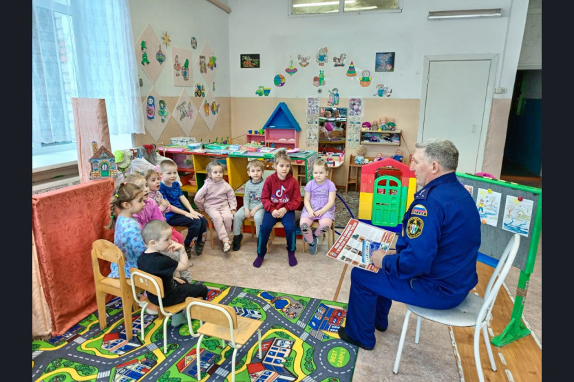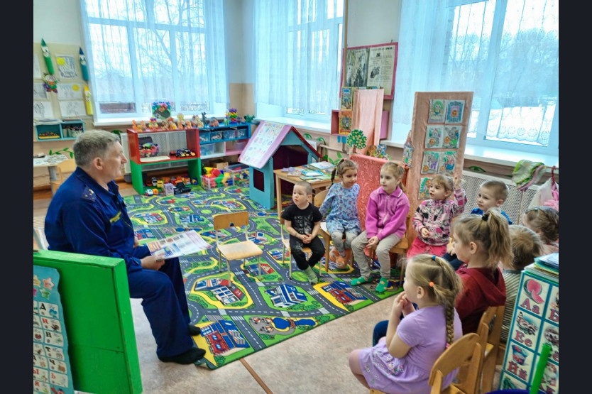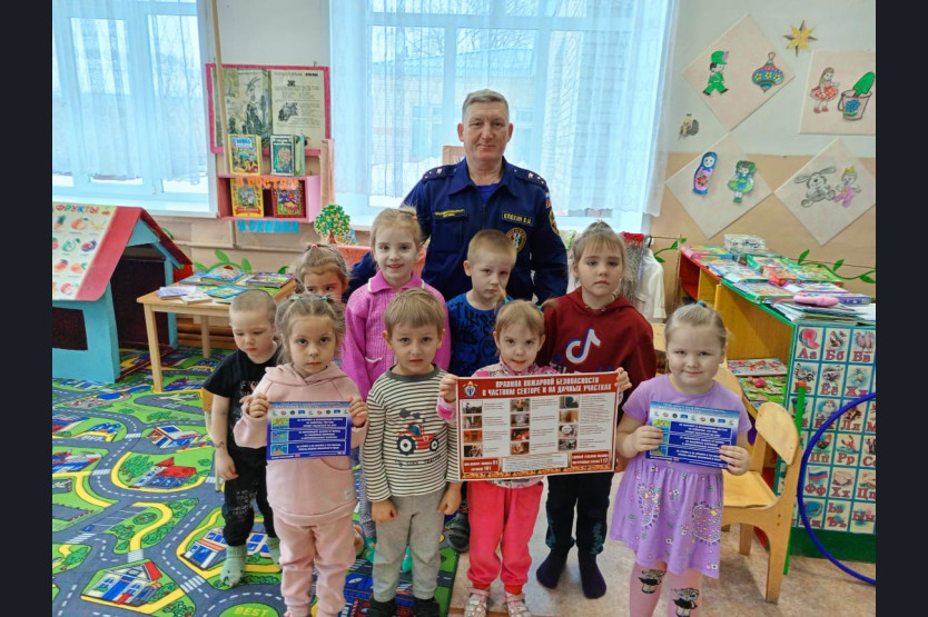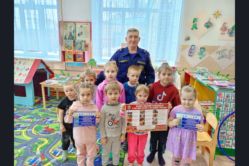 Дошколятам рассказали о запрете сжигания сухой растительности и разведения костров, о недопустимости самостоятельно топить печи пользоваться газовыми и электрическими приборами.
